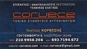 CORVECE - ΚΟΡΒΕΣΗΣ ΝΙΚΗΤΑΣ - ΣΥΝΕΡΓΕΙΟ ΑΥΤΟΚΙΝΗΤΩΝ ΗΛΙΟΥΠΟΛΗ