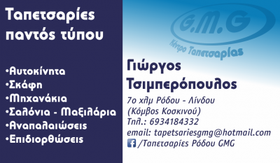 ΚΕΝΤΡΟ ΤΑΠΕΤΣΑΡΙΑΣ GMG - ΤΑΠΕΤΣΑΡΙΕΣ ΑΥΤΟΚΙΝΗΤΩΝ ΡΟΔΟΣ - ΤΑΠΕΤΣΑΡΙΕΣ ΜΟΤΟΣΥΚΛΕΤΩΝ ΡΟΔΟΣ