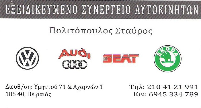 ΣΥΝΕΡΓΕΙΟ ΑΥΤΟΚΙΝΗΤΩΝ ΠΕΙΡΑΙΑΣ - ΕΞΕΙΔΙΚΕΥΜΕΝΟ ΣΥΝΕΡΓΕΙΟ OPEL VW ΠΕΙΡΑΙΑΣ - ΠΟΛΙΤΟΠΟΥΛΟΣ ΣΤΑΥΡΟΣ